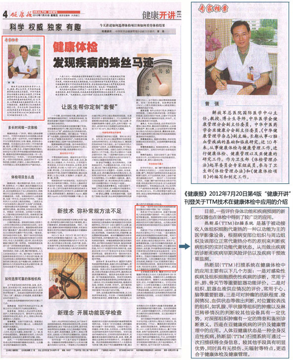 2012年7月20日第4版《健康報(bào)》“健康開講” 刊登關(guān)于TTM技術(shù)在健康體檢中應(yīng)用的介紹